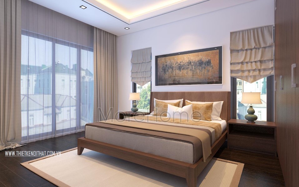 Thiết kế nội thất gỗ óc chó tại biệt thự Việt Hưng