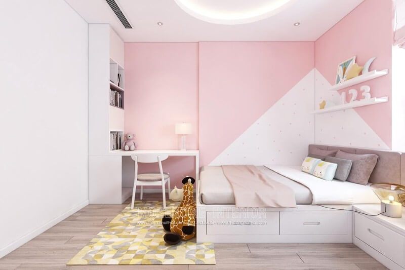 Mẫu thiết kế phòng ngủ chung cư hiện đại, nhà phố đẹp cho bé gái.